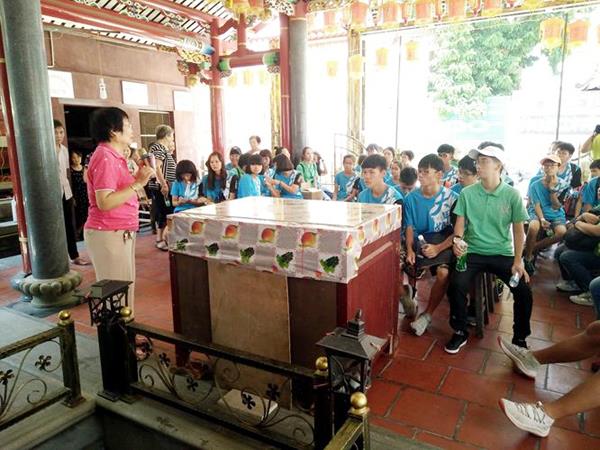 在新殿,文峰宫管委会主任陈鹭玲组织大甲妈儿童家团向文峰宫妈祖行三献礼,详细讲解了文峰宫的发展历史,带领团员们参观文峰宫三代祠、宋代妈祖木雕像等历史建筑及文物。