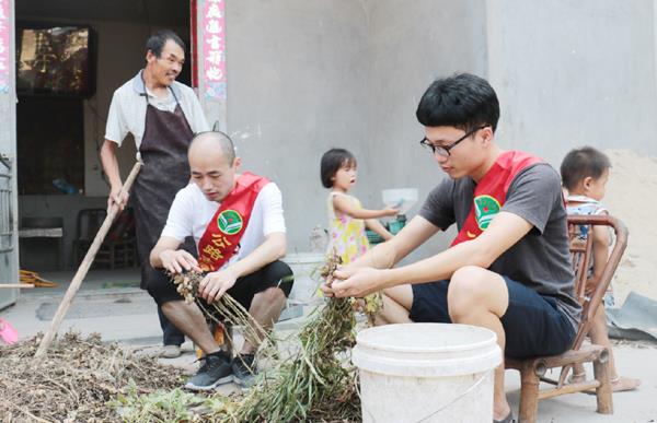 活动中,志愿者一行来到翁国连家庭,在听取来意后,因残疾拄拐的老人既意外又感动。当得知从田里收获的花生还未采摘时,志愿者们二话不说,立马围成一圈,奋力采摘,大家你争我赶,笑声连连……其他志愿者,有的拿起扫把,清洁庭院卫生;有的抱来花生秆,投喂牲畜……大家分工明确,忙中有序。经过三个多小时的劳动,志愿者们终于把墙角成堆的花生采摘完毕,庭院环境也焕然一新。“非常及时!我腿脚不利索,干活速度慢。这几天暴雨,花生如果不及时采摘晾干的话,沤着很容易发芽、腐烂。”看着热闹的劳动场景和整洁的院落,老人握着志愿者的手连声道谢。