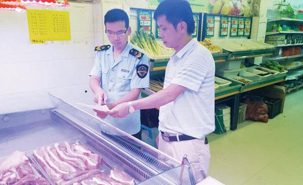 本次检查,重点检查肉类、水果蔬菜、水产品、熟食等,仔细检查食品来源、渠道,检查是否做好进销货台账和建立索证索票制度,防止受淹、受潮食品流入市场;重点检查肉类来源,防止病死猪、变质肉品等不合格肉食品流入市场。同时,执法人员对辖区3个农贸市场开展食品快检,重点对检查农产品、蔬菜。 (蔡艳清)