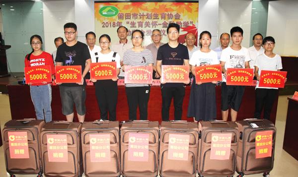 8月21日上午,市计划生育协会举行“生育关怀·金秋助学”助学资金发放仪式。这次受助的贫困学生共有49名,其中11名列为省计生协会资助对象,每人每年资助5000元,连续四年至大学毕业;市计生协会资助38名,每人一次性资助5000元。市人寿保险公司还为每名学生赠送拉杆箱一个。