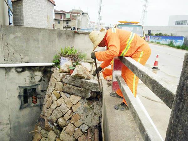 截止8月31日下午,埭头公路站职工在桥头钻开一个排水孔,安装上排水管道,切实解决了林先生的烦恼。 (朱琳琳 芹芹)
