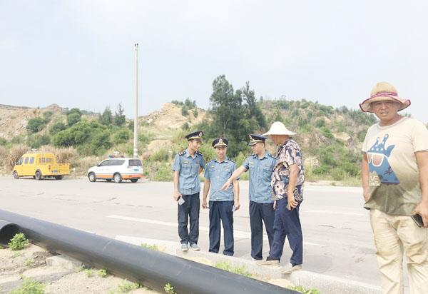 企业未经许可,擅自在公路路肩堆放供水管道,准备破路施工,秀屿公路分局路政人员联合北岸交通综合行政执法大队依法及时“叫停”,有力地维护了路产路权。