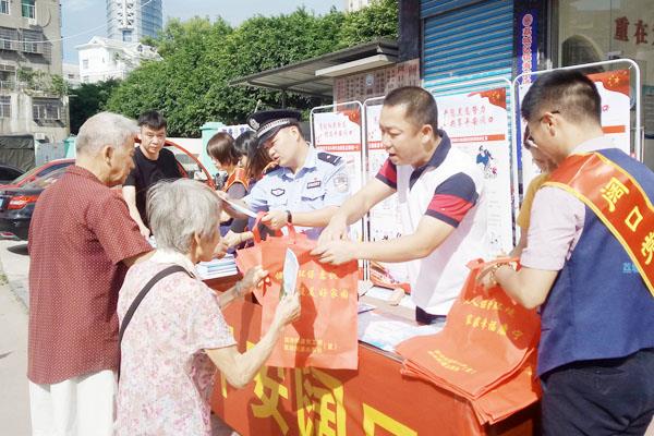 图为19日上午,镇海派出所民警在阔口社区开展扫黑除恶专项斗争宣传活动。(时报记者 翁志鹏 通讯员 王志铭)