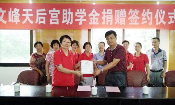 近日,莆田文峰天后宫管委会主任陈鹭玲一行来到莆田学院,与莆田学院校方代表签订捐赠协议,在莆田学院设立文峰宫妈祖助学金,为期三年。