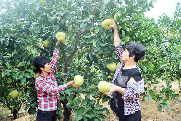 山顶林戴帽,山下稻米香;山中果飘香,山间路缠腰。在仙游县大济镇政府西北部5公里的汾阳村马宫山上,一大片绿油油的文旦柚园里果实累累挂满技头,在早晨阳光照射下青翠欲滴,许多员工在果园里忙碌着采收文旦柚。有拉下树枝剪摘的,有挑着文旦柚穿梭在果园里,她们不顾身上的汗水,快步不停地赶进场地,有的分拣装袋、有的过磅装车,个个忙碌着手中活,装满文旦柚的车辆沿着盘山公路徐徐下山运往全国各地。