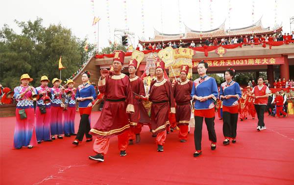 10月17日(农历九月初九),海峡两岸纪念妈祖羽化升天1031周年大会在湄洲岛深澳底沙滩的妈祖祭坛上举行。来自马来西亚、香港等海丝沿线国家和地区的代表以及台湾、广东、海南、福建等地妈祖宫庙文化机构代表2000多人参加。