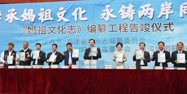 10月17日,《妈祖文化志》编纂工程告竣仪式在湄洲妈祖祖庙天后新殿广场举行。海峡两岸妈祖宫庙代表、马来西亚等海丝沿线国家和地区的妈祖宫庙代表出席。