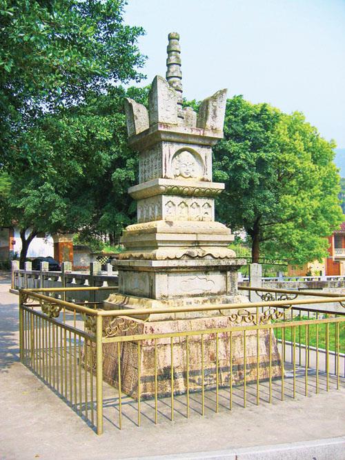 释迦文佛塔是广化寺的标志性建筑,也是寺院中最精美的建筑物。凝重的五级八角形楼阁式塔身,配以高扬飘举的飞檐,高耸云表,显得古朴端庄而秀美,呈现“苍松翠柏参雄塔”的诗情画意。塔檐仿瓦雕刻,塔身约有千幅雕刻精美图案,金刚罗汉、菩萨力士、双头羽人、海水卷云、飞天、朱雀花卉等浮雕,堪称佛教艺术的瑰宝。其人物浮雕线条疏密有致,刚柔相济,神态毕肖,栩栩如生。展示宋代石雕艺术的精华。