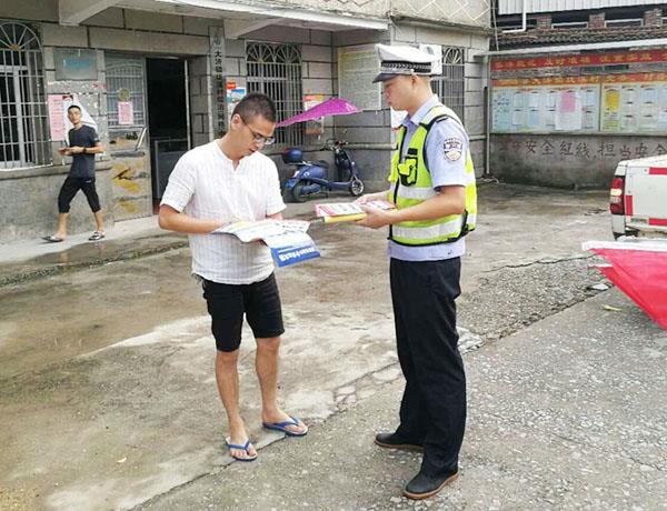 民警利用车辆比较集中的时间段,依托农村劝导站服务台,向驾驶人员及村民发放交通安全宣传资料,同时大力宣传酒驾、毒驾、涉牌、涉证等重点交通违法行为的危害性,告诫他们要严格遵守交通法律法规,做到安全驾驶文明行车。