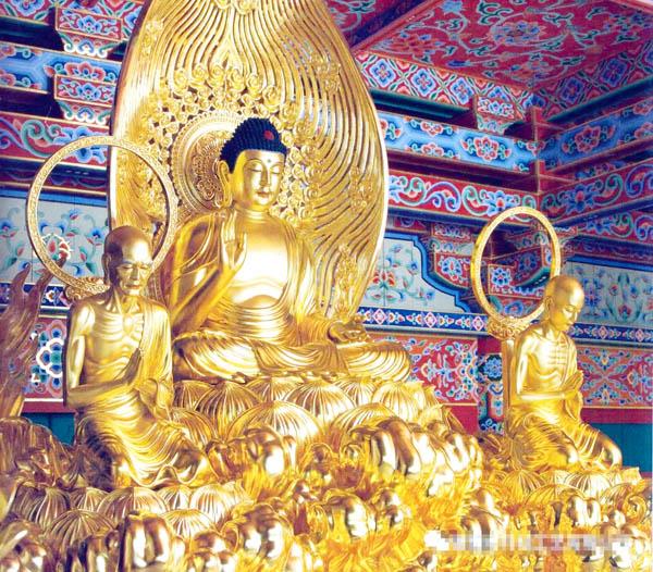 日本无量寿寺《一佛二弟子》木雕贴金作品 黄文寿/作