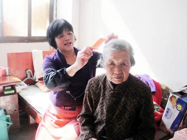 对于一些特困家庭的特殊群体,她更是把护理院当做“爱心救助站”。郊尾镇染厝村有一个失去劳力的40岁残疾哑巴女,残疾丈夫离家不归,本来跟公婆一起过,可后来公婆去世后,被送到院里,7年来她每月只收三四百元入托费,令其家人和村干部十分满意。待她如同自己亲生女儿,把女儿的衣服拿给她穿,把孙子吃的零食拿给她吃,虽然这个女孩不能讲话,但从她的眼神里可以读出:“院长就是活着的在世好妈妈!”