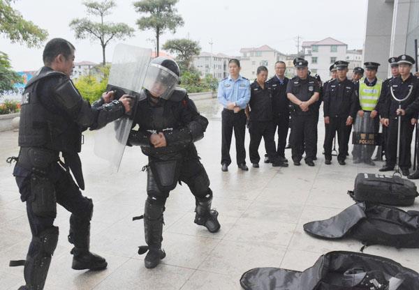 又讯 日前,凤凰山派出所到城厢第一实验幼儿园开展反恐演练。演练中,民警组织校园安保人员认真学习了安保人员的职责与权限,讲解了校园保安职责任务、执勤方法等实用知识,就盾牌、钢叉、伸缩棍、催泪瓦斯等警械的使用方式方法进行培训,组织实地操作,对不规范动作逐一进行纠正和讲解。民警还组织学校安保人员、老师开展模拟对抗演练,进一步提高校园处置突发事件的能力和水平。 (柯益妹)