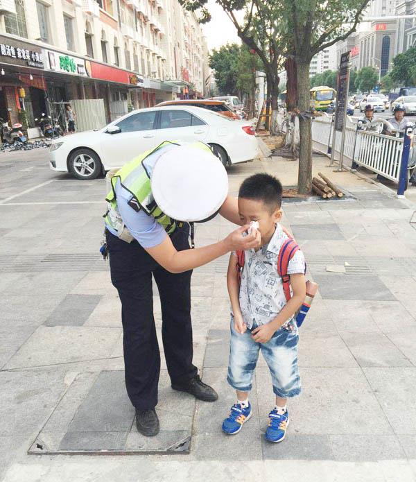 本报讯 日前,城厢交警大队二中队民警带领辅警在辖区凤凰别墅山庄高峰执勤时,突然有群众过来告知民警,路边有个孩子找不到父母着急的在哭泣。执勤民警立即安排辅警前往路口查看。
