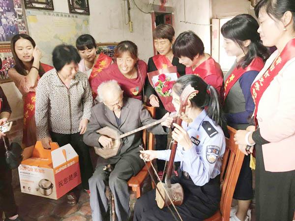期间,黄石派出所民警及镇街工作人员一行带上鲜花、慰问品深入黄石镇水南居委会、东源村、惠上村、惠下村、七境村等村居,在各村村干部的陪同下前往百岁老人家中进行慰问。每到一户,民警及镇街工作人员都与老人亲切交谈,聊家常,仔细询问他们的饮食起居和身体状态,嘱咐他们要好好保重身体,并送上鲜花和慰问物品,让老人们感受到党和政府对他们的深切关怀。在现场民警还认真听取老人们在交谈过程中提出的一些困难并详细记录下来,表示公安机关将尽自己所能为其排忧解难。 (欧倩)