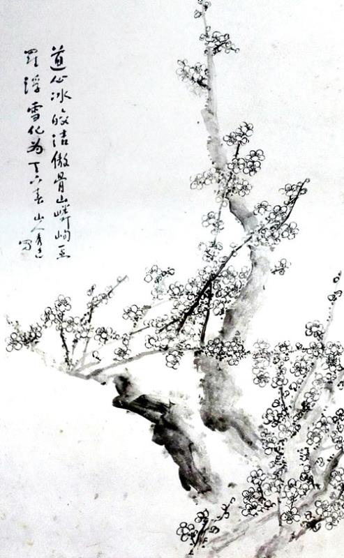 ▲《墨梅图》,款识:道心冰皎洁,傲骨山嶙峋。一点罗浮雪,化为天下春。山人秀廷画。