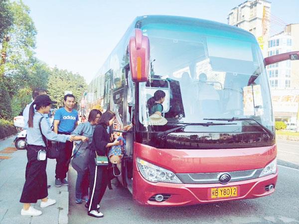 11日上午,莆运旅游集散服务中心人潮涌动,来自莆田和涵江两地的150多位游客坐上了3辆专业旅游巴士,前往峰峦凝翠的瑞云山风景区,探寻永兴石窟神秘,体验水滑道带来的惊险刺激。“其实很早之前就听说瑞云山好玩,特别是有水滑梯、热气球,一直想带家人过来玩。如果是开私家车过来费用比较高,而且玩起来也没那个气氛。现在直通车开通,一家人一起坐大巴去玩不仅可以认识很多新朋友,而且还会玩得热闹一些。”方女士一家显得非常兴奋。