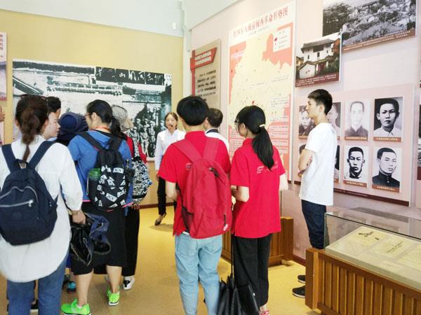 本报讯 为了深入学习和贯彻党的十九大精神和习近平新时代中国特色社会主义思想,为当代大学生打开一扇亲身接触“红色革命文化”的大门。7月16日上午,莆田学院信息工程学院“红色中国”暑期社会实践队来到了福建省文物数量最多的革命纪念馆--古田会议纪念馆,亲身感悟红色历史,寻找革命印记。
