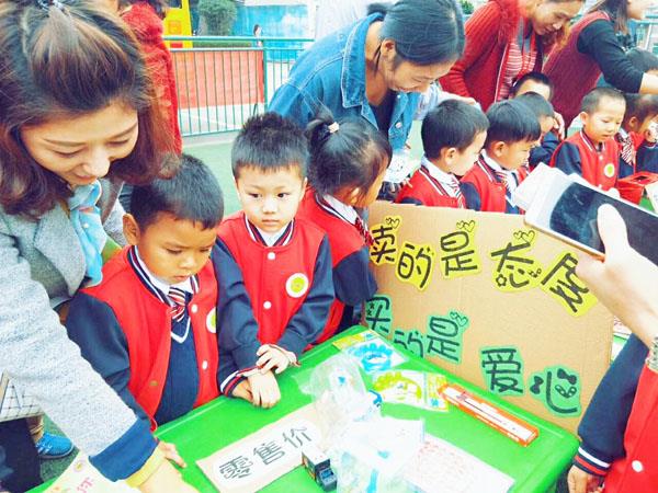 据悉,当天所义卖的物品是由家长和孩子们所捐赠的闲置物品,活动中,孩子们既得到了自己心仪的物品,又奉献了爱心,更加体会到了“爱”的意义和价值。孩子们大胆地担当起老板,用心积极地推销自己的物品!各种口号,叫卖,吆喝,特价广告,交易声交织出动听的旋律!北岸学儒幼儿园小班的蒋骏辰兴奋地向记者展示自己的成果:“今天我很开心,我准备的玩具都卖出去了,可以帮助他人啦!”家长们也很卖力的进入买卖中,给孩子做起表率和引导性!活动场的氛围都“爱”围绕着!家长林英表示:“我们孩子带来他最心爱的工具玩具,因为我的孩子是小班的孩子,所以对于这种感恩的情节他们可能还不太能理解,但是他们内心肯定有一种奉献的种子等着我们家长,等着我们去帮他们浇灌发芽。”