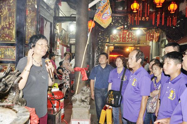 在文峰宫旧殿,台湾信众向文峰宫妈祖行三献礼,并参观文峰宫三代祠、梳妆楼等古建筑,以及宋代妈祖木雕像等文物。 (郑协)
