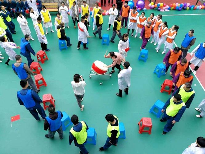 户外趣味运动形式具有丰富多样,在游戏中,不仅使患者和医护人员们互动性增强,提高碍患者参与的热情,从而调节情绪和思维,更有利促进患者的身心康复。此次趣味运动内容包括十人九足、大风吹、抢椅子、萝卜蹲、大球夹小球、钻呼啦圈、车轮滚滚等七个项目。
