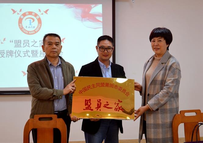 下午,赵爱红和中共市委统战部副部长许卫雄在盟员企业壶兰律师事务所共同为“法制服务”盟员之家授牌。莆田民盟“法制服务”盟员之家成立后,将发挥盟内在司法界的人才优势,积极建言献策,开展社会服务,将民盟司法界的优良传统传承并发扬光大。