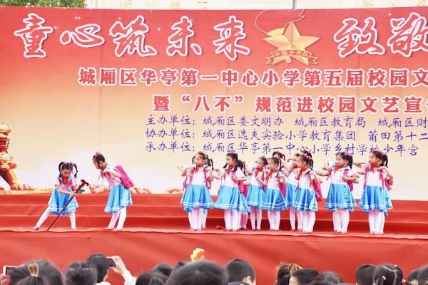 日前,城厢区华亭第一中心小学举行“童心筑未来,致敬新时代”第五届校园文化艺术节暨“八不”规范进校园文艺宣传活动,全体师生共享视听盛宴,共迎美好明天。