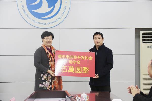 日前,市扶贫开发协会向湄洲湾职业技术学院捐助五万元人民币,用于帮助该学院困难学生,据介绍,该笔助学金将帮助近三十名困难学生顺利完成学业。 (陈各辉)