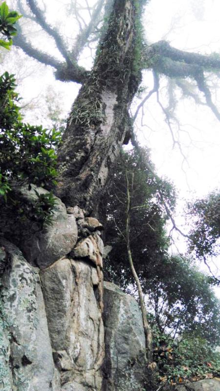 古树矗立巨石上千年不倒