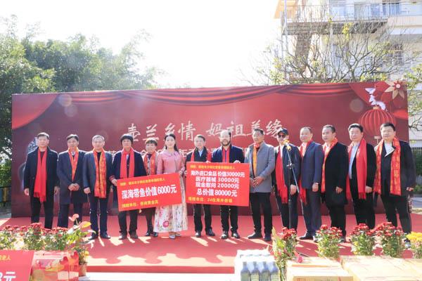 海外侨领、侨商向夕阳红慈善幸福院捐赠了6.6万元物资,向该院老人直接发放现金红包2万元。莆田市餐饮烹饪行业协会、莆田市海峡茶业交流协会、莆田市广告行业协会、莆田市荔城区食品药品行业协会、莆田市花卉行业协会、石狮市莆田商会等10多个商会、协会也到场捐赠了价值8万元的爱心物资。