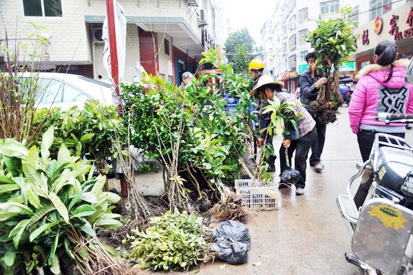 “从过完年就开始出来卖苗了,买的人不少。”据一林姓老汉说,他利用荒地建立苗圃培植近三千平方米的各种花果苗,他每天都到市场来销售,早上有一位果农跟他定购200株枇杷苗、龙眼苗,等下就要出苗送货上门。市场上熙熙攘攘不少市民正在察看树根、询问价格挑选果木苗,一位正在购买枇杷苗的果农说,他山上几块农旱地准备栽上龙眼、枇杷、黄梅果树,省肥省工又省力好管理经济效益高,栽果树是最合算的经济作物。 (陈国松)