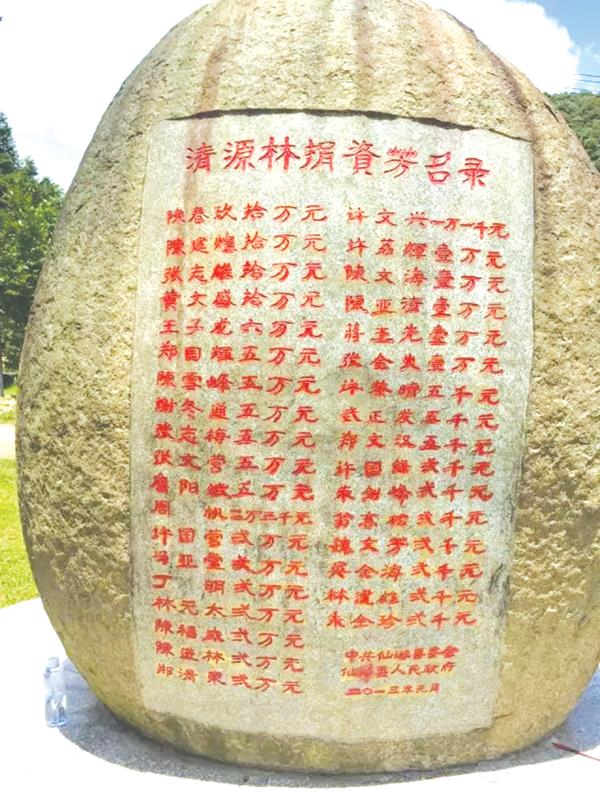 据悉,2012年7月,在莆田市委驻京党工委倡议下,陈春玖、张志雄等驻京党组织负责人和黄文盛等党建之友捐资100万元,在木兰溪源头四周植造“清源林”,种有红豆杉、桂花、香樟、乐昌含笑等多种树木。如今,“清源林”郁郁葱葱,蔚然成林。 (时报记者 林锦堂)