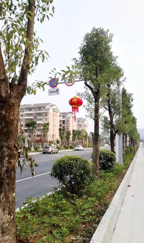 日丽山河秀,风和草木荣。屿上村通往千古木兰陂的,是一条笔直的、整洁的新路,道路两侧新植的绿化树富有气势,似乎是在告诉人们:瞄准新图景,奋进新征程!树枝上还悬挂着大红灯笼,映照着普通市民对新一年美好生活的向往。