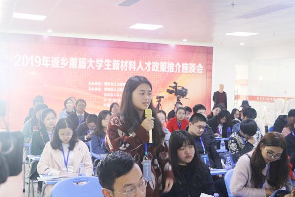 为了更好地宣传推介我市新材料产业和人才发展环境,鼓励莆籍人才返乡创业就业,推进莆田新材料产业的人才集群发展。元宵期间,由市人力资源和社会保障局主办,秀屿区人力资源和社会保障局、市人事人才公共服务中心、共青团秀屿区委员会及中国海峡人才市场莆田分部共同承办的2019年返乡莆籍大学生新材料人才政策推介座谈会在秀屿区青年创业园举行。