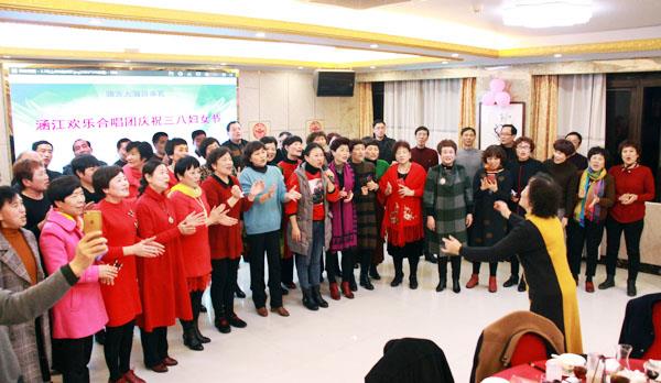 3月7日晚,涵江欢乐合唱团用自娱自乐的方式举行庆祝三八妇女节活动,全体团员们用歌声表达自己快乐的心情。