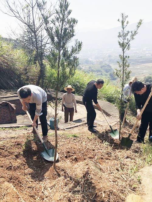 本报讯 3月12日,市民族与宗教事务局全体党员干部来到仙游县龙华寺开展义务植树暨三月学雷锋志愿服务活动,大家相互协作,有的挖坑,有的扶树,有的培土,有的浇水,精心栽下一株株树苗,用实际行动积极践行习总书记提出的“绿水青山就是金山银山”的生态理念。 (陈丽敏)