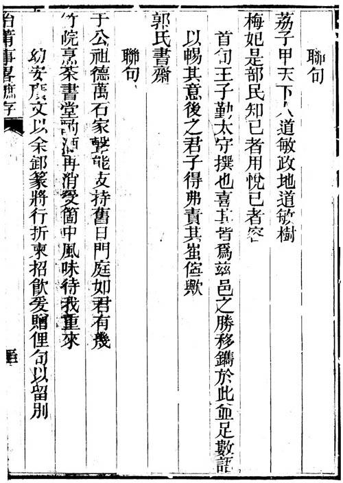 综上所引,这副楹联的真正作者是王广业。王广业(1800—1884),《明清进士题名碑录》道光六年丙戌科榜名“王佐业”后注“改名广业”,则其原名佐业,字子勤,江苏泰州人。他出生于泰州王氏望族,于道光三年(1823)参加会试中第,因目疾于道光六年(1826)补殿试,录为二甲第24名进士,授户部主事,又升任兵部郎中,道光十一年(1831)十月补军机章京。此后历任湖南衡州、福建福宁、汀州、漳州等地知府。道光末擢升福建汀漳龙兵备道道员,咸丰初因参与平定小刀会功,赏顶戴花翎。不久又任兴泉永道道员,驻厦门。咸丰七年(1857)因目疾致仕。返回泰州后,又积极筹办团防,获清廷加赠按察使衔,著有《乡贤世德录》《听花轩诗》《国朝诗一脔集》《海陵竹枝词》等。王同时也是一位著名藏书家,自称藏书六万卷,其中宋元旧椠、名人抄本世所罕见。其藏书喜钤“王广业印”“子勤”“箱塾”等。