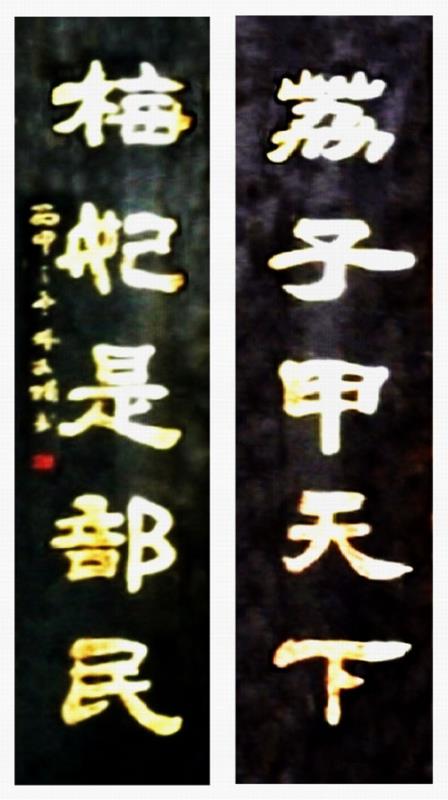 这副楹联现在也刻于黄石江东村浦口宫梅妃神龛之两旁。其实这副古联是官署衙门联,现在都被挂在宗教建筑楹柱上,殊为不妥。在梅妃的神龛前书此联,让梅妃自己称自己是“部民”,岂非好笑。