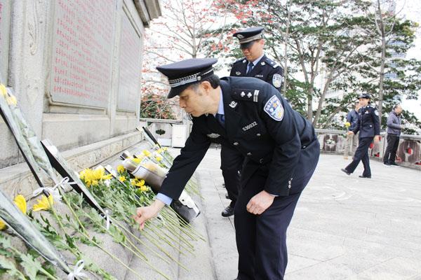 参加祭祀的队伍里,还有20多天就要退休的户政科老民警陈玉和,怀着对警察这份职业的认同感与热爱,每天坚持上班,值守户籍窗口,主动参与了此次祭祀革命英烈活动。(周金赞)