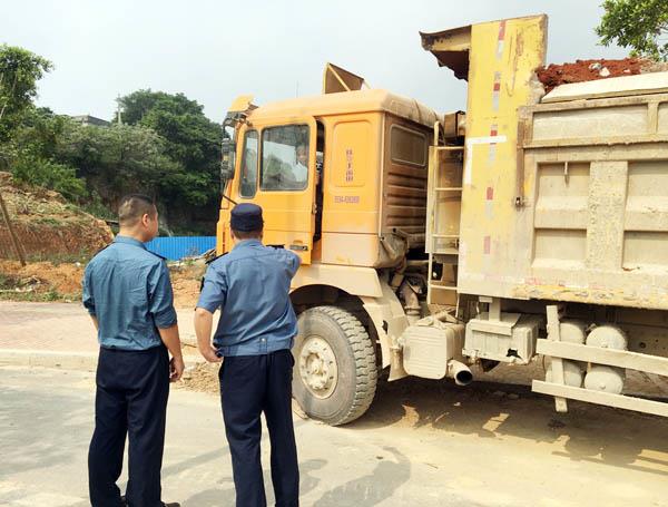 当日上午,联合执法队伍发现1辆土方车土堆过高,车厢未密封,存在“滴洒漏”隐患,检查人员现场对驾驶员进行批评教育,并要求驾驶员严格按照整治要求进行货物运输,做好运输车辆密闭措施,防止扬尘抛撒,不得超限超载或“滴洒漏”污染路面。