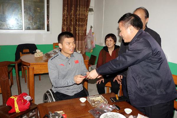 近日,荔城区残联理事长林志峰一行走访慰问假期在家的新度镇港西村国家滑雪队残疾人运动员郑鹏,向其在平昌冬季奥运会、全国第十届残疾人运动会上获得佳绩表示祝贺,并送上了2000元慰问金。
