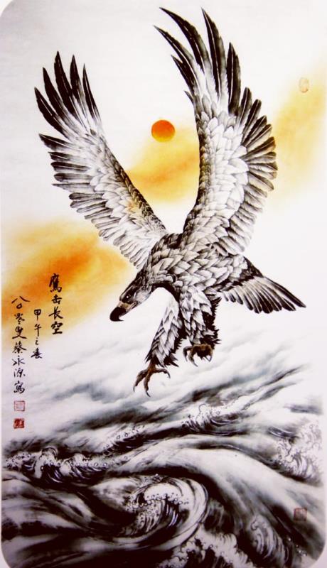 国画《鹰击长空》