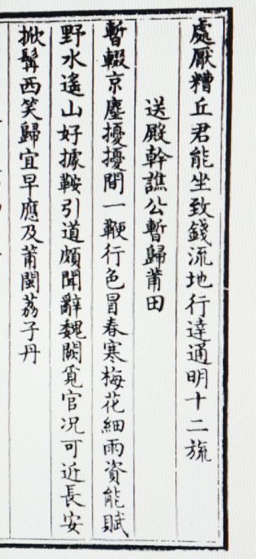 郑樵此次来京,适逢刘勋在临安,对郑樵多有照料。他深知朝中的规则,也懂得郑樵的志向与心绪,作《送殿干谯公暂归莆田》一诗赠行。诗曰: