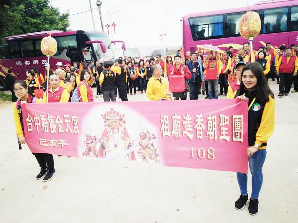 4月10日上午,台湾台中梧捿金天宫主委蔡巾壮、兴建浩天宫主委王经绽、云林北港朝天宫副董事长蔡辅雄带领128位妈祖信众到莆田贤良港天后祖祠谒祖进香。民革湄洲湾北岸支部主委、贤良港天后祖祠董事会董事长林自弟率众董事和骨干党员迎接进香团一行。