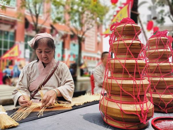 面塑、泥塑、草编、竹编、刺绣、钩针、糖画、扎染、土陶、制蒸笼、画脸谱……“心灵手巧”民间工艺展示区,莆田民间艺人现场制作、展示传统手工技艺,展现了传统手工艺融入现代生活的独特创意。