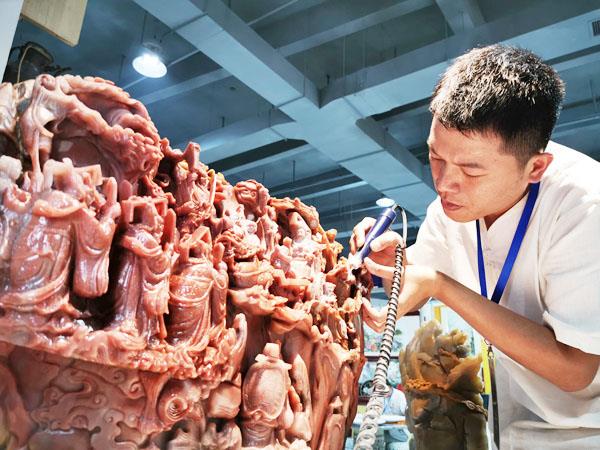 80后工艺师吴生伟现场创作玉雕作品《妈祖》