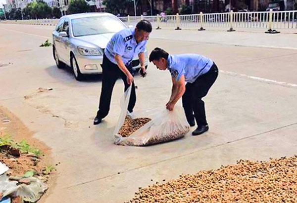 通过为期一周的巡查,在农户的配合下,共清理路面占道晾晒花生、稻谷13处100余米,消除路面交通安全隐患。 (陈国松 罗金鑫)