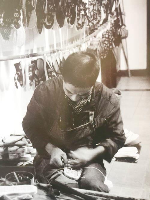 制鞋匠制作一双鞋子,经过制鞋匠许多道制作工序。首先是“放鞋样”,师傅根据社会上流行的款式,先画清样;然后,放在对折好布料上剪裁,一次只能剪下两只鞋面;接着,再在剪好的鞋面内,贴上二层衬布。第二道工序“车鞋边”,用缝纫机在鞋面内口边缘“车”上两道封口。第三道工序“割鞋底”、“剪鞋底衬”,由店内经验丰富的师傅亲自在橡胶片上画样,再用直割刀裁割成不同的规格。剪鞋底衬也一样。第四道工序“扎鞋”,按双配好鞋面、鞋底、鞋衬扎成鞋子。第五道工序“楦鞋”,扎好的鞋子还得用鞋楦头进行“整行”,成为商品鞋上市。楦鞋时,先在鞋面上刷些清水,然后将同一尺码的脚掌楦塞入鞋内,再放脚跟楦,最后选用适当厚度的调节木,用锤子敲打,使它紧紧嵌入脚掌楦和脚跟楦之间,把鞋面涨紧,再用小锤在鞋面的前前后后轻轻拍打,校正样式。最后一道烘烤。遇到晴天,只需将楦好的湿鞋子放在阳光下晒干就成了。如碰上春季阴雨天,则用木炭火烤干。