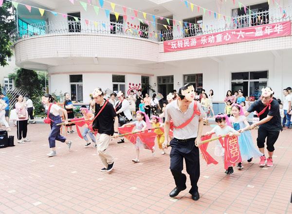 说起“跳房子”“丢沙包”“踢毽子”“弹玻璃珠”“跳皮筋”……这些传统民间游戏,您是否回想起自己美好的童年时光呢?为弘扬传统文化,促进幼儿健康成长,营造童真童趣童乐的校园文化活动氛围,让更多的孩子体验传统民间游戏带来的快乐,涵江区实验幼儿园后坡园根据幼儿的年龄特征和身体发育情况,结合传统民间游戏的天真、活泼、质朴等特点,紧紧围绕“玩转民游乐动童心”的主题开展“六一”活动,让孩子们在游戏中享受快乐,让孩子们和爸爸妈妈一起重拾童年记忆。