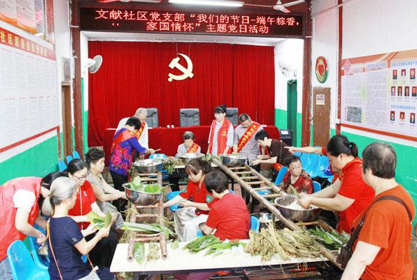 近日,荔城区文献社区组织社区志愿者、居民代表以及有关人员,举行“我们的节日·端午”为主题的包粽子竞赛活动。当天上午,文献社区内的活动现场中其乐融融,选手们迅速拿起粽叶,盛上食材各显身手迅速包起粽子,在大家的巧手下瞬间变成了一个个诱人的粽子。之后,社区工作人员、志愿者们把所包的粽子煮熟后,全部送给社区内困难户、流动人口的未成年子女和留守儿童,让大家共享社区大家庭的温暖和关爱,并向他们送上节日的祝福,营造一个丰富、祥和的传统节日文化氛围。 (子木)