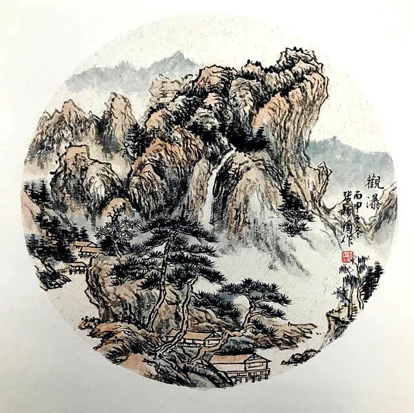 国画《观瀑》 张新国/作